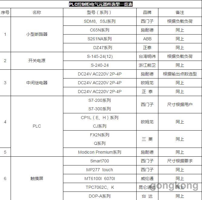 plc控制柜可達到設備自動化和全過程自動化控制柜,達到完美的網絡作用,性能穩定,可拓展、抗干擾等優勢,是工業化的核心和靈魂。身為一位出色的電氣工程師,熟練掌握PLC的電氣元器件型號選擇是專業能力,下面是納控網編收集的一點基礎元器件選型目錄,僅作參考!!