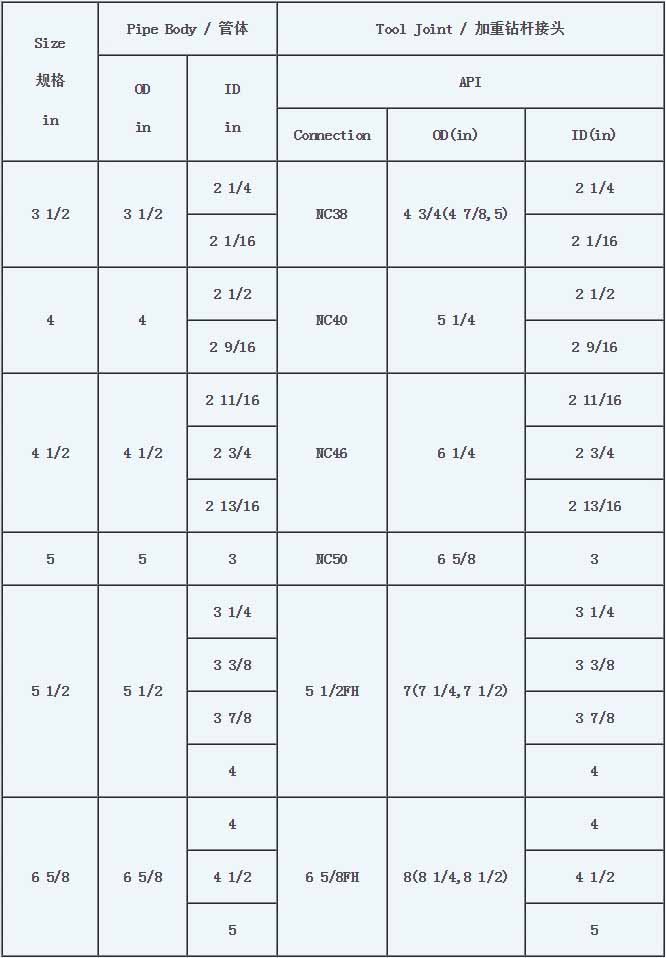 生產加重鉆桿規格: